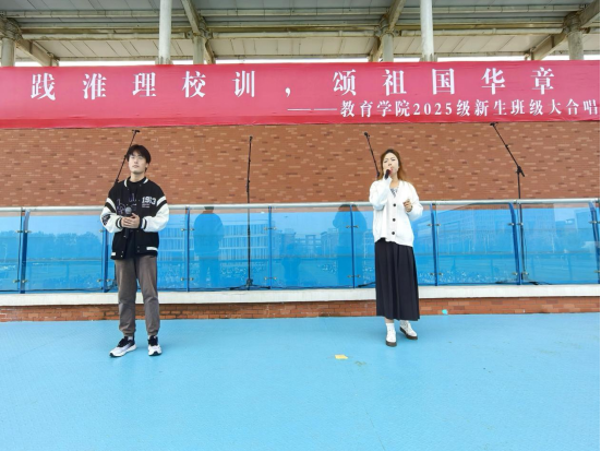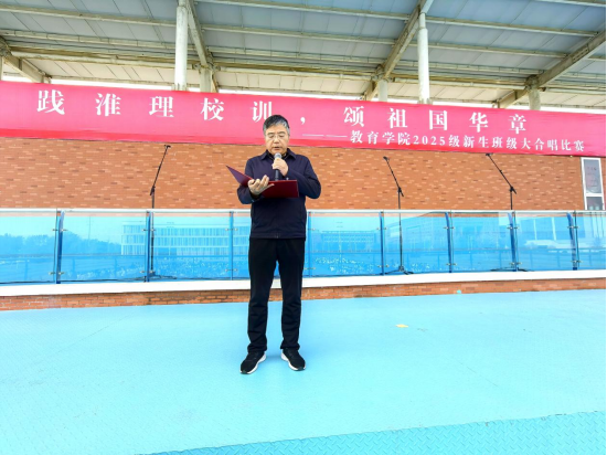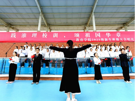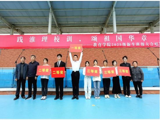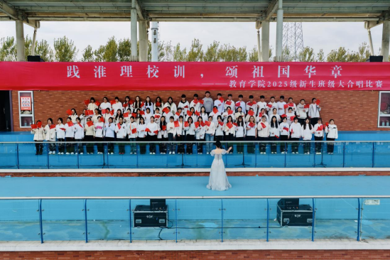 为弘扬爱国主义精神,厚植家国情怀,引导2025级新生深入理解并自觉践行校训精神,10月29日下午,776net必赢官网在操场举办“践淮理校训,颂祖国华章”2025级新生班级大合唱比赛。2025级共30个班级1000多名同学组成15支队伍参加比赛。776net必赢官网党总支书记(院长)王家云、分管副书记孟向红、副院长谢贤德、校团委书记刘帅克、776net必赢官网全体辅导员以及2025级全体新生共同参加了本次活动。