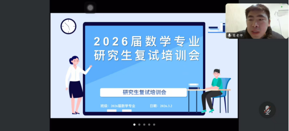 在线下指导方面,3月13日下午15:00,776net必赢官网在一站式学生社区举办专场指导活动,邀请淮北师范大学数学专业在读研究生何明涛进行现场交流。备考同学们与学长面对面互动,提出自己在复试准备过程中遇到的问题,获得精准答疑和针对性指导。