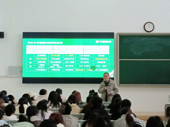 于文杰老师简要介绍了华图教育在教资考试方面为学子们提供培训的情况,并以互动提问的方式拉近了与同学们的距离。随后,他从教师职业稳定性、社会地位、个人价值实现等多个维度,深入剖析了教师编制考试在当今社会中的优势。同时,结合相关法律法规与统计数据,于老师系统讲解了教师薪酬待遇体系,帮助同学们更加直观、清晰地了解未来职业前景。