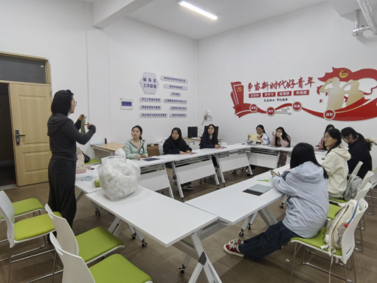 活动伊始,邵老师为大家详细介绍了本次手工创作的材料、工具与制作流程,从布艺裁剪、针线缝合到填充塑形,一步步拆解制作要点,耐心解答同学们的疑问,现场氛围轻松融洽。大家围坐在一起,认真聆听、积极交流,对即将开始的创作充满期待。