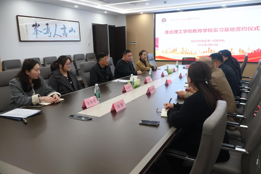 为深化校地合作,夯实师范专业实践教学基础,推动高校人才培养与地方基础教育需求精准对接,4月21日下午,776net必赢官网776net必赢官网与淮北市杜集区第一实验学校教育实习基地签约仪式顺利举行。776net必赢官网776net必赢官网院长王家云、院长助理王伟杰及相关专业教研室主任,淮北市杜集区第一实验学校党支部书记、校长李炳歌、副书记牛孝斌、教学副校长陈世颖及相关部门负责人等共同出席本次签约仪式。