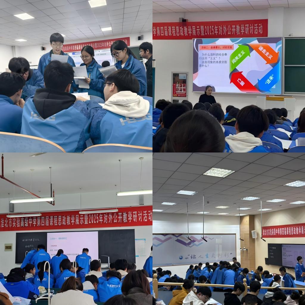 深入一线:在真实课堂中感知育人实践:本次观摩活动以“聚焦课程思政育人,探索培土浇根铸魂”为主题,为我院师生提供了一次宝贵的“下沉式”学习机会。我院师生分组深入语文、数学、英语、班会、美育等多个学科的公开课课堂,零距离观察和感悟“课程思政”在中学教学一线的实践样态。淮北市实验高级中学的教师们展示了高超的教学艺术,他们巧妙地将家国情怀、文化自信、科学精神等思政元素“润物无声”地融入学科教学,为我院未来教师们提供了鲜活而深刻的教学范例。